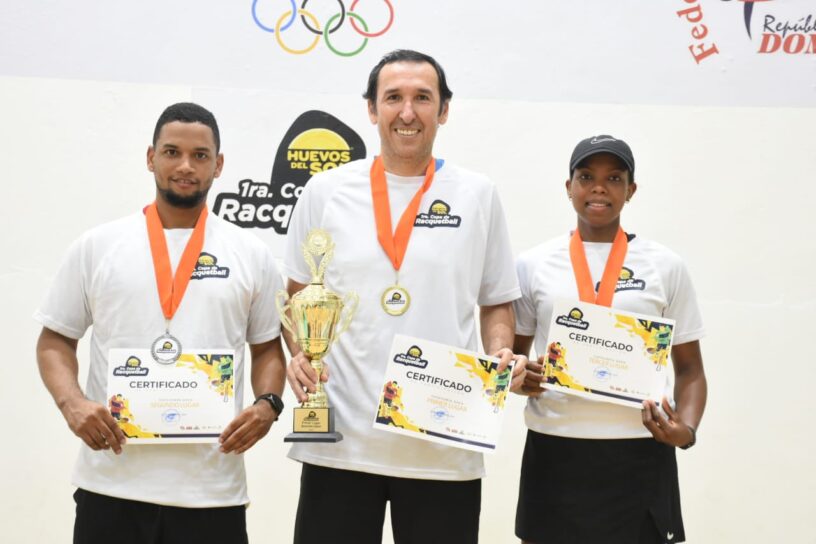 SANTO DOMINGO.- Los atletas Ricardo Monroy, Ramón de León y Mery Delgado se alzaron con los máximos honores de la primera copa de ráquetbol Huevos del Sol.