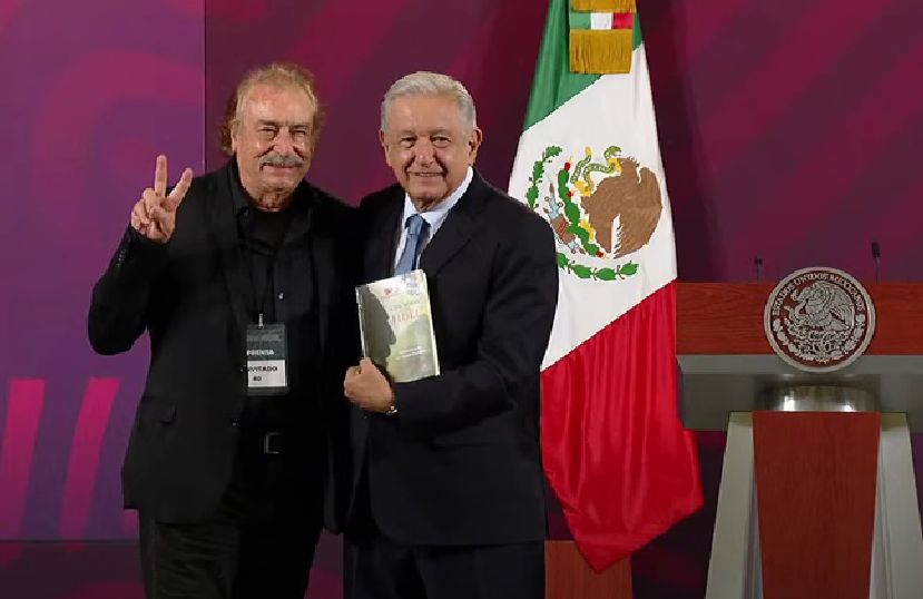 Dr. Ignacio Ramonet le entregó a López Obrador un ejemplar de ese libro que le dedicó y en ese momento se tomó una foto con el presidente mexicano, mientras con su mano izquierda hacía la V de la victoria.