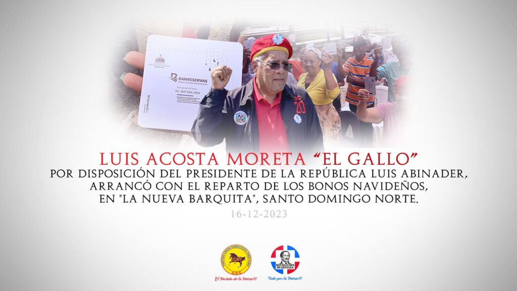 El presidente de la Unión Demócrata Cristiana –UDC- Luis Acosta Moreta, Luis «El Gallo» comenzó el reparto de Bonos Navideños en barrios populares de Santo Domingo y San Cristóbal, por expresa disposición del presidente Luis Abinader para que todos los dominicanos tengan una navidad feliz.