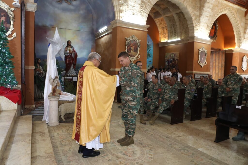 Durante la homilía, oficiada por el Arzobispo Metropolitano de Santo Domingo, Monseñor Francisco Ozoria Acosta, los Oficiales del Estado Mayor General y Conjunto de las Fuerzas Armadas, se unieron a la plegaria de los sacerdotes, quienes abogaron por la protección divina en favor de los miembros de las instituciones castrenses y de la Policía Nacional, y al tiempo reconocer el esfuerzo realizado por los soldados dentro y fuera de los cuarteles en todo el país.
