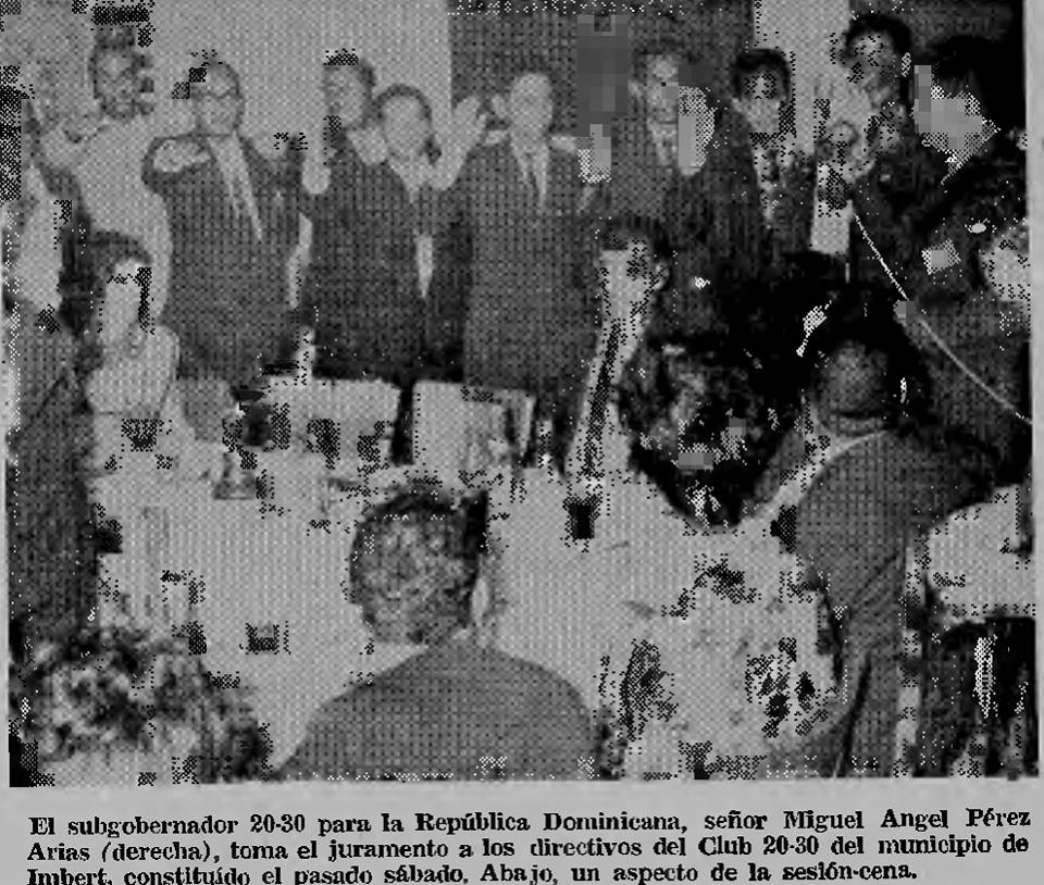 La importancia de estos eventos está registrada en el diario El Caribe, en una reseña sobre las incidencias de la Tercera Convención Internacional del Sub-Distrito 20-30 de la República Dominicana, celebrada el día 21 de mayo de 1964 en el hotel Montaña del municipio de Jarabacoa, presidida por el doctor Miguel Ángel Pérez Arias, con la participación de una delegación del club 20-30 de Imbert.