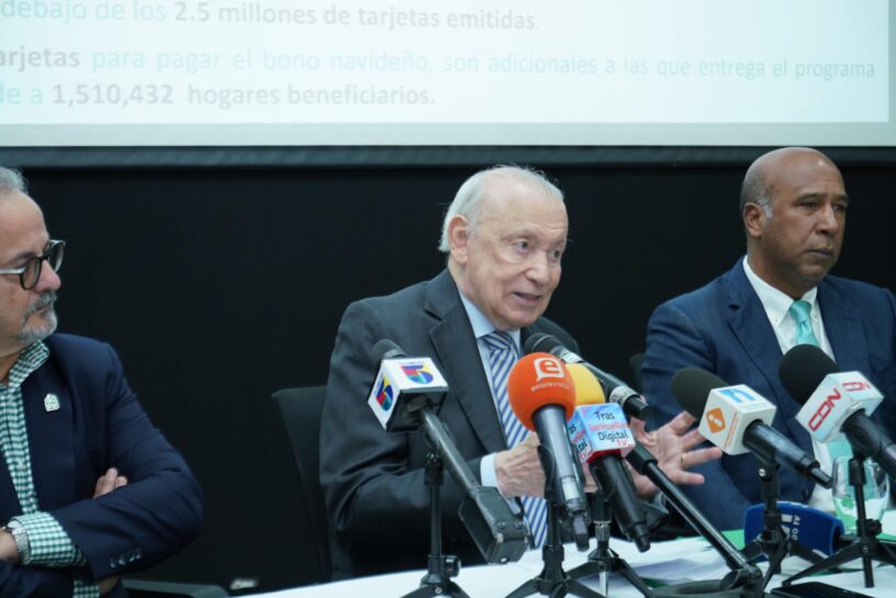 En el informe dado a conocer por el doctor Alburquerque, de la Dirección Política de la FP, acompañado de los titulares de las secretarías de Seguridad Social y, de Programas Sociales, Fernando Caamaño y Onofre Rojas, respectivamente, se precisa que, la emisión de “2.5 millones de tarjetas para pagar el bono navideño” es adicional “a las que entrega el programa Aliméntate que beneficia a 1,510,432 hogares”, representando un total de 4,010,432 de tarjetas, cerca del 50% de los 8 millones 103 mil 291 dominicanos que podrán ejercer su derecho al voto en los sufragios municipales, que se celebrarán el próximo 18 de febrero, de acuerdo a lo establecido por la Junta Central Electoral.