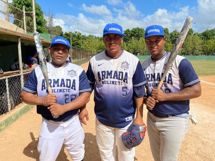 Ariel Guzmán, Luis Martínez y Wilton Villafañe, quienes fueron los líderes del triunfo de la Armada en el torneo de softbol molinete de los Juegos Militares.