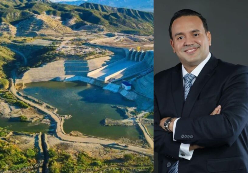 A la izquierda, una panorámica de la presa Monte Grande y a la derecha Elvys Duarte, dirigente nacional del Partido Revolucionario Moderno (PRM). (Fuente externa)