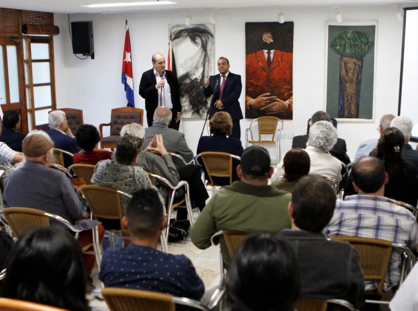 Organizado en la sala Villena de la Unión de Escritores y Artistas de Cuba (Uneac), durante el tributo intelectuales de ambos países denunciaron la barbarie israelí y el secuestro de la cultura palestina a través de canciones, poemas y declaraciones públicas.