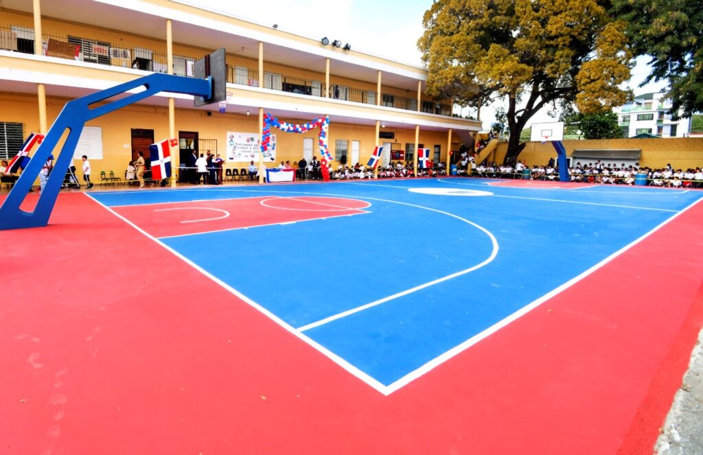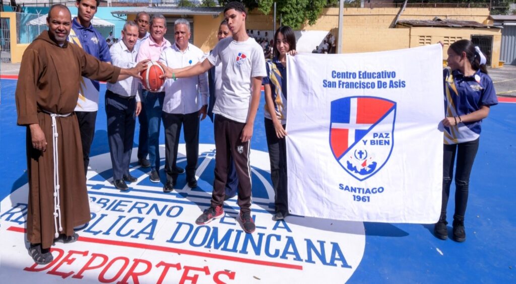 SANTIAGO DE LOS CABALLEROS, Santiago, RD, 23 de febrero de 2024.- La Dirección Provincial de Deportes, MIDEREC-Santiago, entregó la cancha para jugar baloncesto y volibol del centro educativo San Francisco de Asís, durante un hermoso acto realizado recientemente en esa institución escolar.
