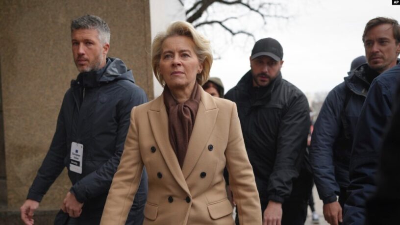 La presidenta de la Comisión Europea, Ursula von der Leyen, viajó por la noche a Kiev en tren junto a los primeros ministros de Italia, Giorgia Meloni; Bélgica, Alexander De Croo, y Canadá, Justin Trudeau.