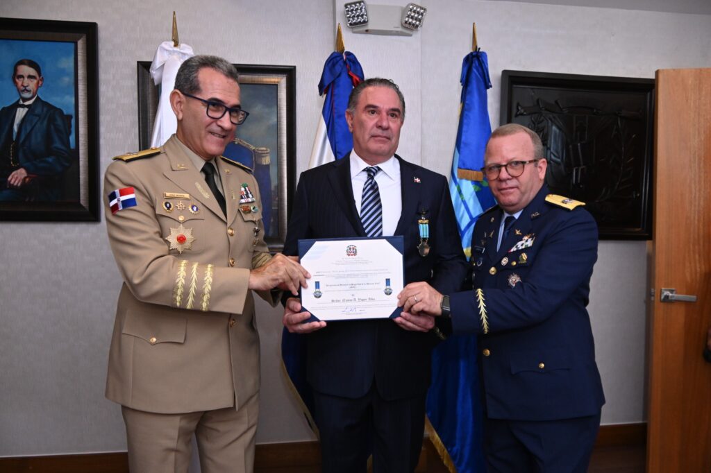 Recibieron la condecoración “Medalla al Mérito de la Seguridad de la Aviación Civil, distintivo azul y verde” en su primera categoría, el vicealmirante Agustín Morillo Rodríguez, ARD, comandante general Armada de República Dominicana; mayor general, Celín Rubio Terrero, ERD, director general del Instituto de Seguridad Social de las FF.AA; (ISSFFAA), el mayor general Jimmy Arias Grullón, ERD, Jefe del Cuerpo de Seguridad Presidencial; así como los señores, Héctor Porcella Dumas, director general del Instituto Dominicano de Aviación Civil y Nasim Yapor Alba, miembro activo de la Junta de Aviación Civil.