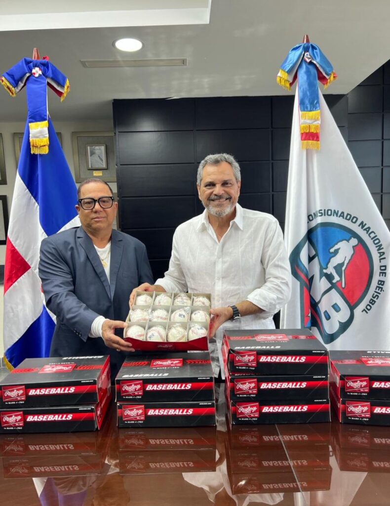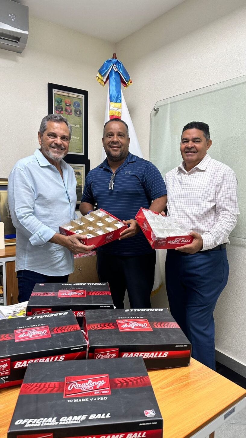 SANTO DOMINGO, RD.- El Comisionado Nacional de Béisbol, Junior Noboa, entregó varias docenas de pelotas de béisbol a los dirigentes Cristian Pimentel y Alfonso Peña para las celebraciones de los respectivos torneos que en los próximos días realizarán las entidades que ambos encabezan.