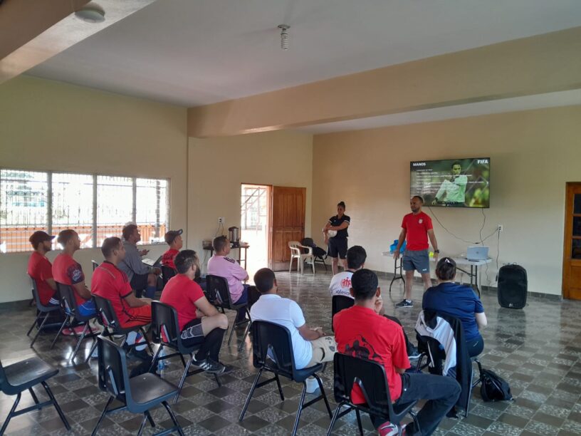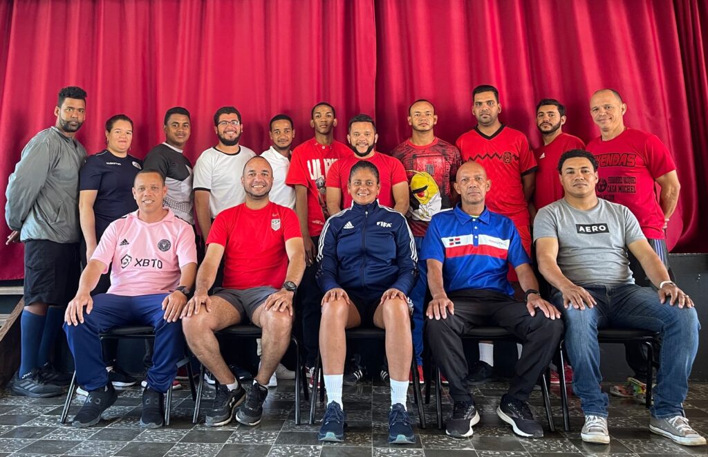 Irazema Aguilera Fuentes y Jorge Luís Mendoza -coordinadores del Departamento de Arbitraje de la Fedofútbol- y la cooperación del árbitro Aramis Fernández estuvieron como instructores del curso.