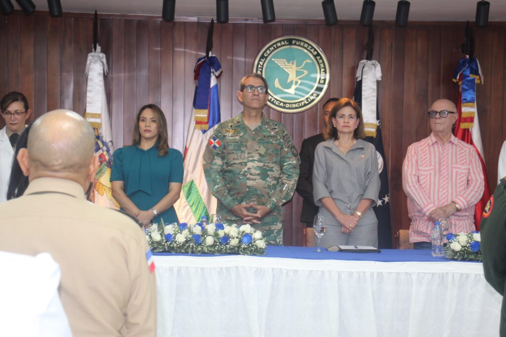 En el acto también estuvieron presentes, la presidente de la Asociación Dominicana de Esposas de Oficiales de las Fuerzas Armadas (ADEOFA), Wendy Santos de Díaz, el director del cuerpo médico del CUSEP, general de brigada Médico Cirujano Luis Díaz Morfa, ERD, oficiales superiores, oficiales subalternos, médicos y civiles.