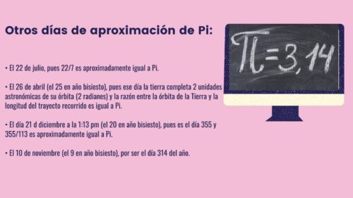 “Pi es una constante matemática que vale 3,14 e incluso es el título de una canción del popular grupo cubano, Buena Fe. Pero es por la respuesta numérica que la Cámara de Representantes de Estados Unidos declaró en el año 2009 al 14 de marzo como su día”, explica la doctora en Ciencias.
