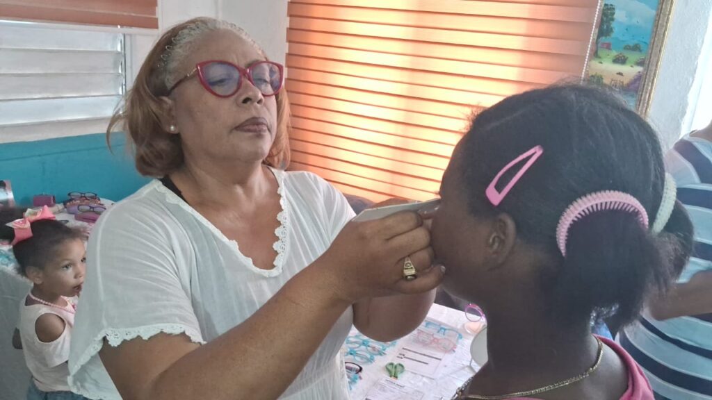 Santo Domingo, RD._ La Fundación Denfi y la Unión de Periodistas y Medios Digitales del Este (Unión) realizaron una amplia jornada oftalmológica en el sector Villa Faro de Santo Domingo Este, donde unos 75 niños fueron examinados,