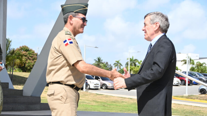 Santo Domingo, R. D., 22 de marzo, 2024.- El ministro de Defensa, teniente general Carlos Luciano Díaz Morfa, ERD, recibió la visita de cortesía del ministro de Estado ante el Ministerio Británico de Relaciones Exteriores, Mancomunidad y Desarrollo, señor David Rutley. El encuentro fue realizado en el salón de reuniones del Centro de Comando, Control, Comunicaciones, Computadoras, Ciberseguridad e Inteligencia (C5i) del Ministerio de Defensa (MIDE) y sirvió para destacar la importancia de la colaboración entre ambas naciones en temas de defensa y seguridad.