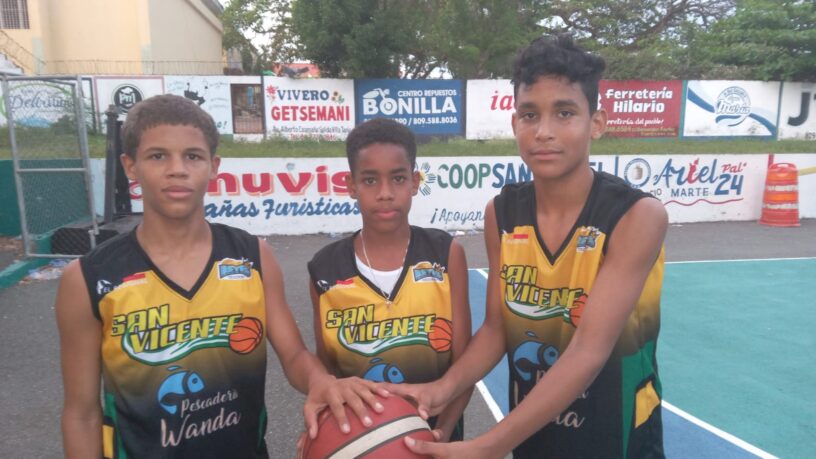 Jaiden Toval, Enderson Concepción y Rafiel Vásquez quienes se destacaron por el San Vicente en la victoria frente al San Martin en el basket U14 provincial