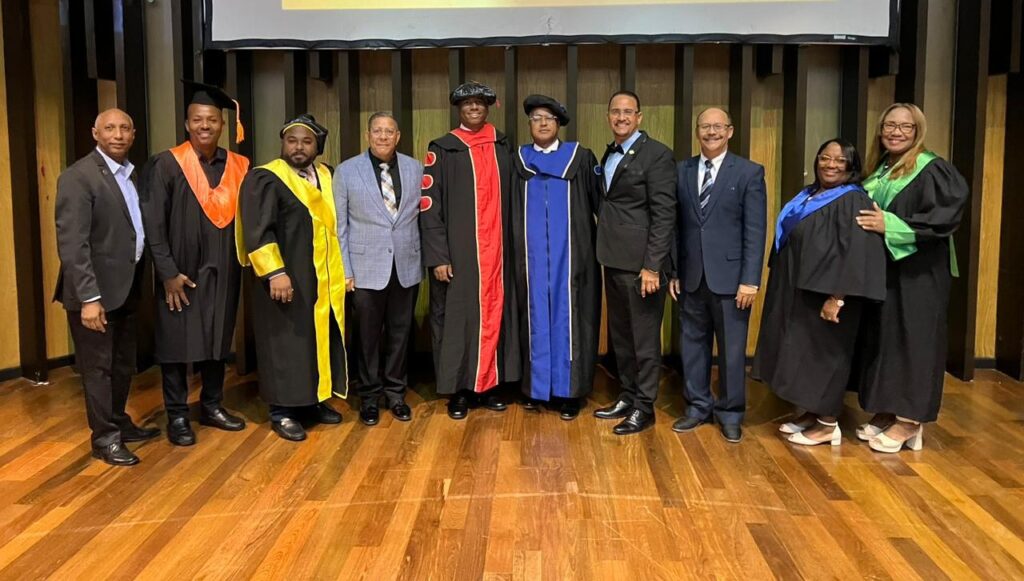 Además, de la Licda. Eunice Valera Tena, vicerrectora académica, Dra. Quenia Nolasco, directora de registro; Lic. César Pérez, director nacional de Extensiones Bíblicas-teológicas; y Janel Encarnación, Coordinador Nacional de Educación Permanente. Martín Mármol, presidente de la Junta Educativa; Juan Antonio Encarnación, Obispo del Caribe Hispano; Yony Samuel Paredes, Enlace de Educación; y el Dr. José Antonio Chery, orador principal de la graduación.