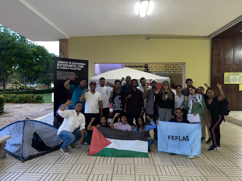 Desde la Republica Dominicana, el Frente Estudiantil Flavio Suero (FEFLAS), se suma a la voz solidaria de siempre del movimiento estudiantil latinoamericano y caribeño, encabezados por la OCLAE, que debe llegar también a los estudiantes de Estados Unidos que hoy firmemente hacen frente a la complicidad de su gobierno con el genocidio en Gaza.