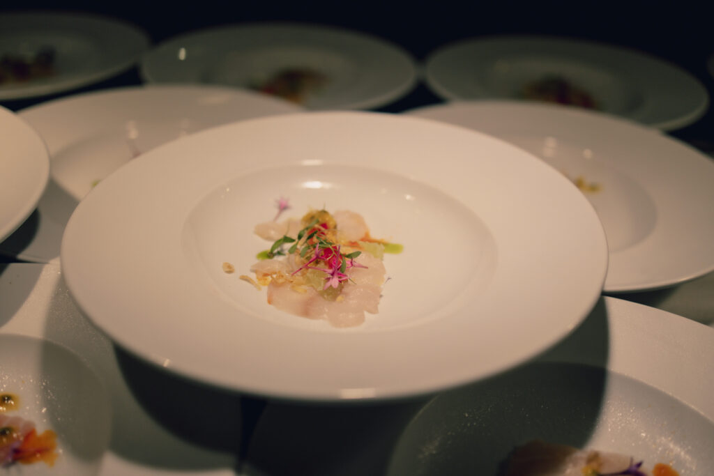 La cena a ocho tiempos fue todo un derroche de sabores y aromas con una exquisita mezcla del estilo y fusión estadounidense del chef Vargas con el arraigado trasfondo culinario italiano de la chef Lofaso, con diversas propuestas de mariscos, aves, pastas, carnes, frutas y especias.