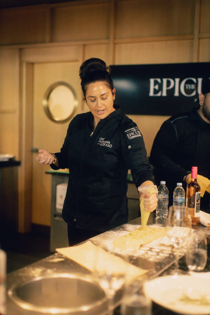 Masterclass Chef Antonia Lofaso, con la veteranía que le caracteriza en el arte culinario, orientó magistralmente a los huéspedes en la preparación de los auténticos ravioli italianos, al tiempo que respondía sus inquietudes e impresiones.
