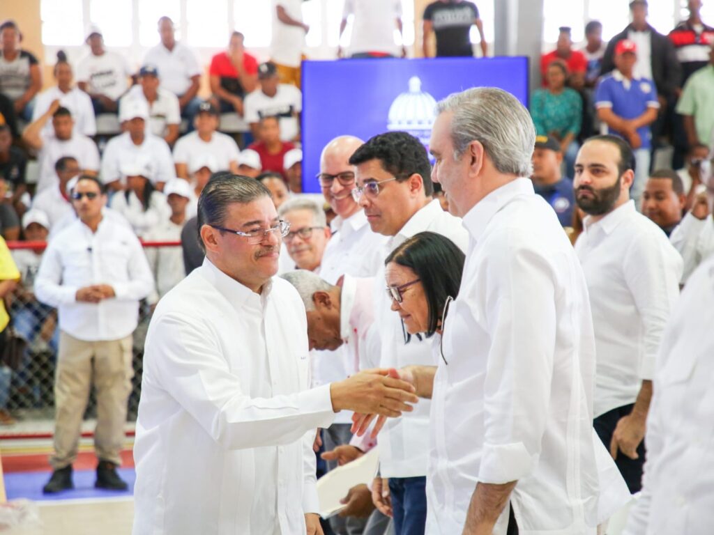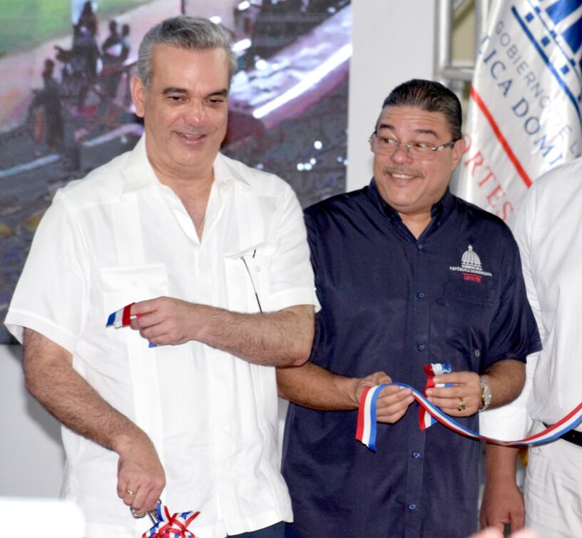 El reelecto presidente, Luis Abinader, junto al ministro de Deportes y Recreación, Francisco Camacho.