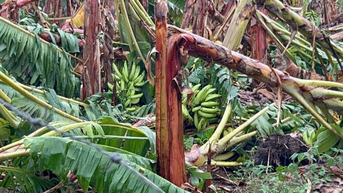 Cruz, acompañado del director regional noroeste del Ministerio de Agricultura, se comprometió a llevar las maquinarias, personal y materiales necesarios para mitigar las consecuencias del tornado, que dejó devastadas más de 6 mil tareas, en su mayoría de plátano, banano, yuca dulce, lechosa, ajíes y otros frutos menores.