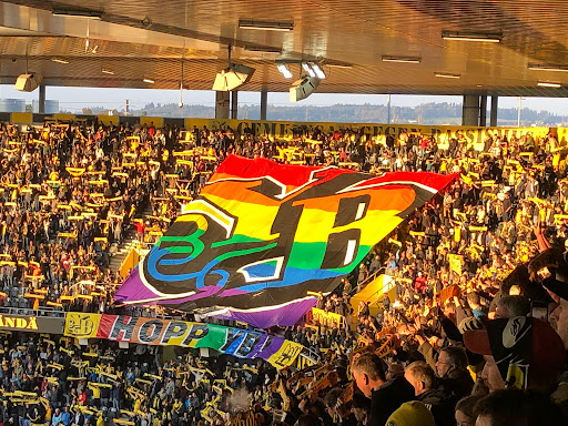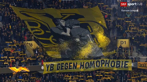 Gran banderola que dice Young Boys contra la homofobia foto YB