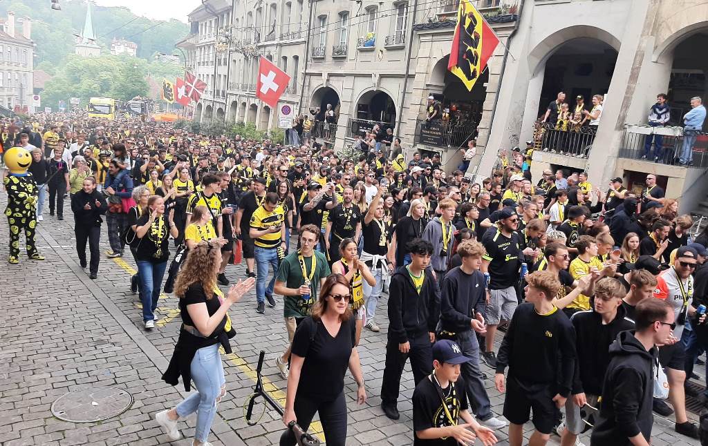 Marcha multitudinaria por la victoria de Young Boys el domingo 26 de mayo del Estadio Wankdorf hacia la Bundesplatz en Berna Foto Sergio Ferrari