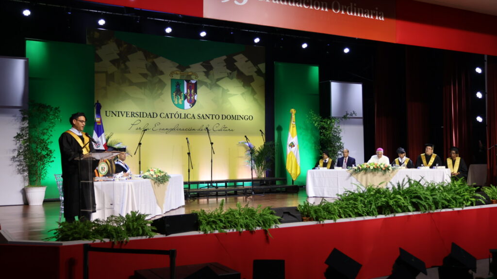 Mientras tanto, el Rvdo. P. Dr. José Luis de la Cruz, rector de la UCSD, extendió una cálida bienvenida a los graduandos en su discurso inaugural, animándolos a seguir buscando la excelencia y a construir su propio camino profesional, siempre guiados por valores éticos. “Hagan honor al lema de nuestra Universidad y construyan su propio camino al andar en sus respectivas profesiones”.