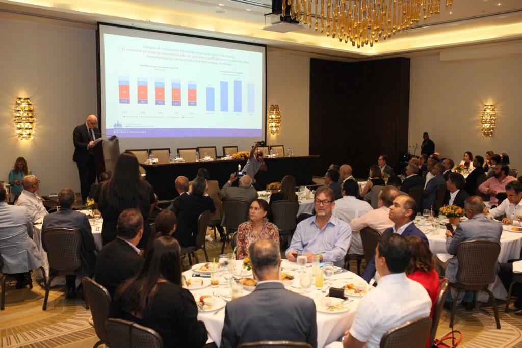 El ministro de Economía, Planificación y Desarrollo, Pavel Isa Contreras, destacó las perspectivas económicas de República Dominicana con alto crecimiento económico y baja inflación en una disertación donde citó la reforma fiscal, la transformación en el sector eléctrico, la reforma de la seguridad social y la reforma del sector agua.