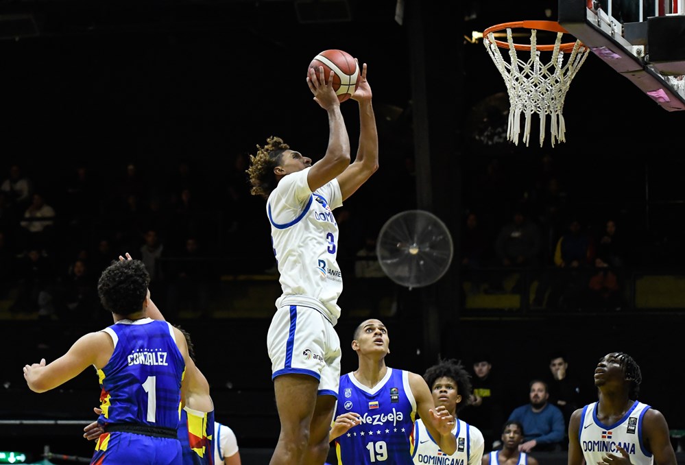 El conjunto Quisqueyano conquistó los dos primeros periodos con marcador 22-16 y 22-21, respectivamente, donde Venezuela contó con una brillante labor ofensiva de Jeiminson Márquez, quien encestó 18 puntos en la primera mitad seguido por Diego Sulbaran con nueve tantos, tres asistencias y dos rebotes.