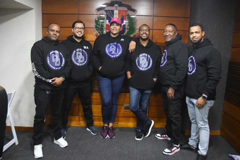 En la gráfica los productores de Diamante Deportivo Baudilio Jiménez, William Aish, Prisilla Rivera, Bienvenido Carmona Jr., Pedro G. Briceño e Iván Cruz.