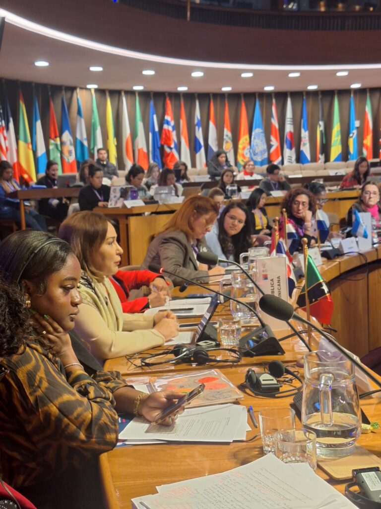 La ministra de la Mujer, presentó el informe de las acciones que desarrolla la República Dominicana en materia de prevención y atención de la violencia de género e intrafamiliar, en la que resaltó las políticas públicas impulsadas desde la gestión de gobierno del presidente Luis Abinader, entre las que mencione el Plan Estratégico Por Una Vida Libre de Violencia para las Mujeres, la Línea de Emergencia *212 del Ministerio de la Mujer, que funciona las 24 horas todos los días; el servicio de Asistencia Legal y Psicológica a mujeres víctimas de violencia, y las 16 Casas de Acogida con las que cuenta la institución, en todo el territorio nacional.