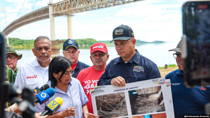 La vicepresidenta afirmó que detectaron el corte de hasta el 20 % de las guayas que sostienen el Puente Angostura sobre el río Orinoco, en el estado Bolívar, en el sur de Venezuela.