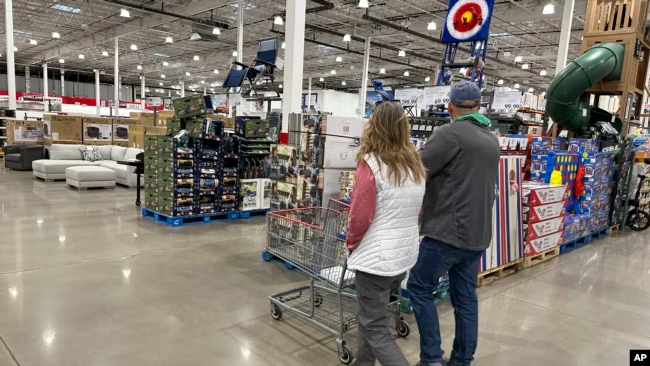 ARCHIVO – Compradores revisan los productos en un almacén de Costco el domingo 25 de febrero de 2024 en Sheridan, Colorado.