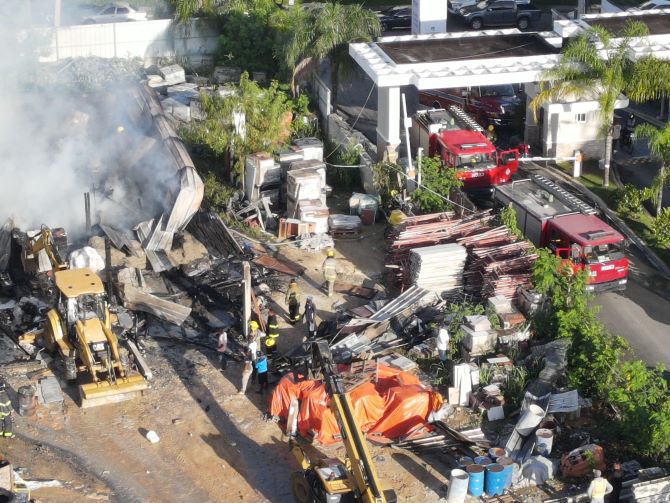En el evento se encuentran laborando 15 camiones del Cuerpo de Bomberos del DN; dos ambulancias de la Dirección de Servicios de Atención a Emergencias Extrahospitalarias (DAEH); y dos unidades de la Policía Nacional. Además, fue requerido el apoyo de EDESUR y el equipo de Drones del 911.