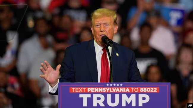 ARCHIVO – El candidato presidencial republicano Donald Trump habla en un mitin de campaña, el 22 de junio de 2024, en Filadelfia.