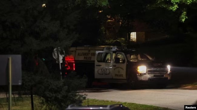 El perímetro de la residencia del sospechoso estaba vigilado, y un vehículo de la policía del condado de Allegheny estaba aparcado fuera.