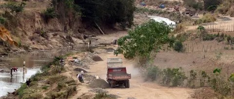Ciudadanos haitianos extraen arena del río Masacre, lo que fue definido por Luis Acosta Moreta (Luis El Gallo), como un crimen ecológico que afecta el curso normal de sus aguas.