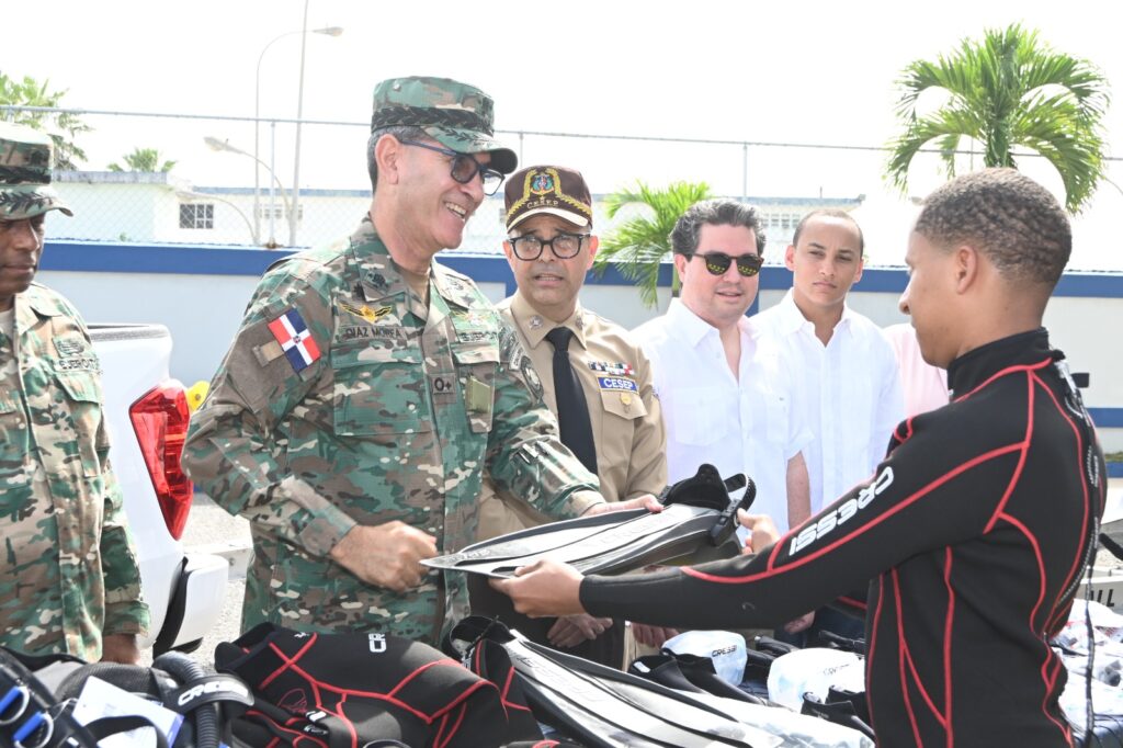 El director general del CESEP, contralmirante Guzmán Taveras, ARD, detalló que “Esta donación consiste en diez equipos de buceo y un dron subacuático para las inspecciones de buques, así como computadoras, pantallas, mobiliario de oficina, pizarras didácticas y fibra óptica, entre otros equipos, como demostración del compromiso compartido con la seguridad y la protección de los puertos del país y en beneficio del comercio marítimo internacional”.
