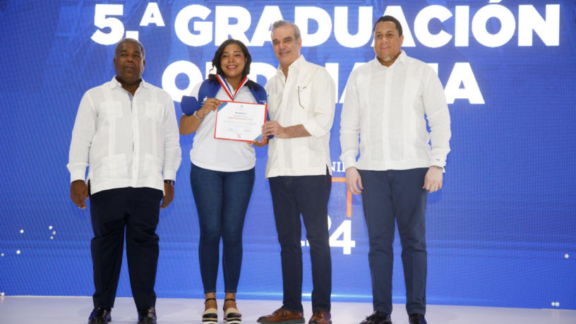 En horas de la mañana se realizó la Quinta Graduación Ordinaria del Programa Oportunidad 14-24, para un total de 4,596 beneficiarios, en una ceremonia encabezada por el presidente Abinader en el Pabellón de Combate del Centro Olímpico.