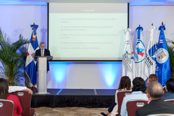 Santo Domingo, R. D., agosto de 2024. – Con el objetivo de enfrentar los complejos desafíos que presenta la migración internacional y su impacto en el desarrollo, el Instituto Nacional de Migración (INM RD) realizó la conferencia “La cuestión de la migración y el desarrollo de cara al siglo XXI”, dictada por el Dr. Raúl Delgado Wise, galardonado con el Premio de Investigación Económica Maestro Jesús Silva Herzog.