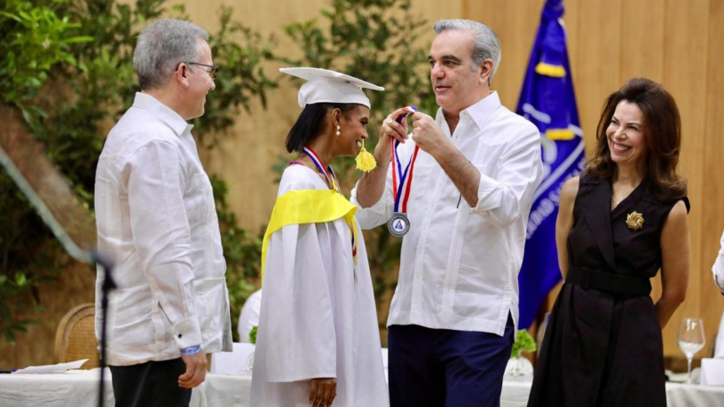 Los graduandos de la promoción «Raicer», cuyo lema es «Recorremos con alegría el camino al éxito responsablemente», recibieron sus diplomas en un acto que también reconoció a estudiantes sobresalientes. Dareen Mariel Gil Cordero fue honrada con el premio a la Excelencia Académica, entregado personalmente por el presidente Abinader.