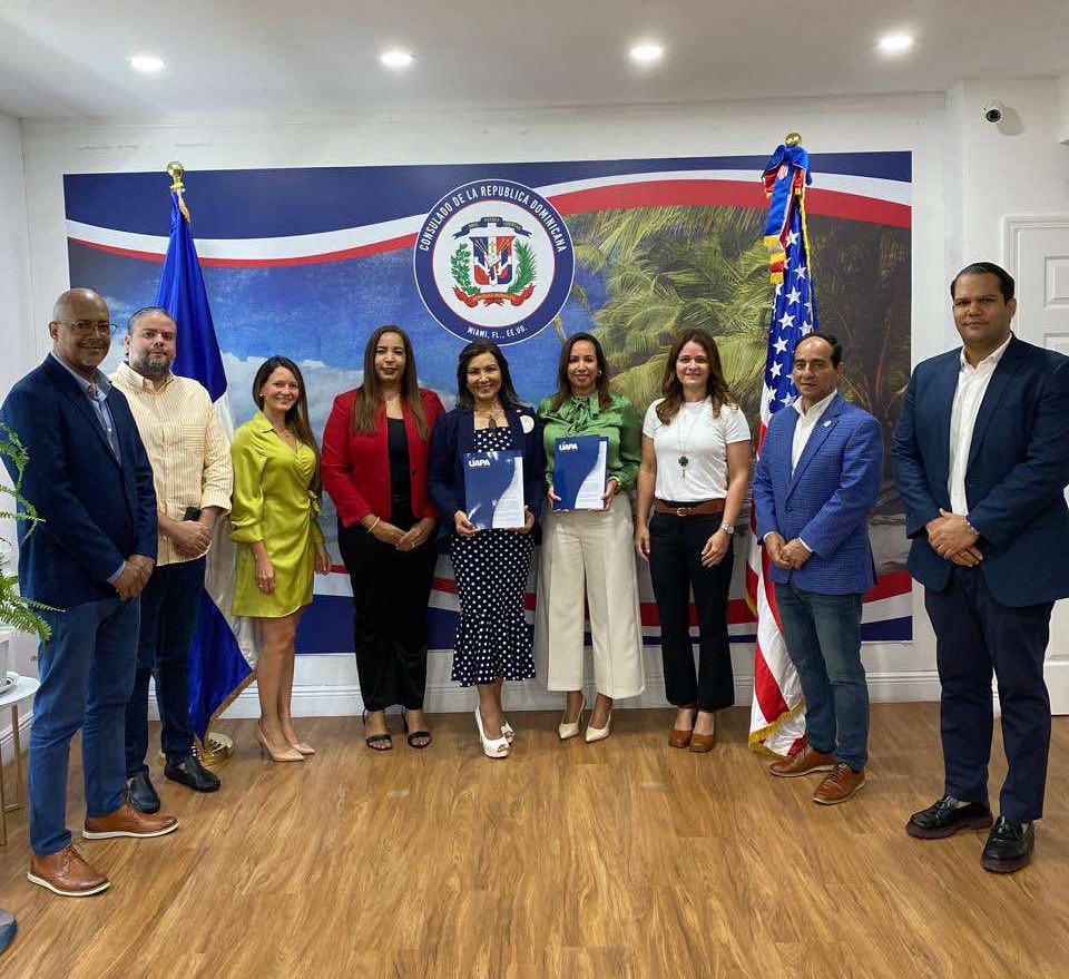 MIAMI.- Para desarrollar acciones que contribuyan con la formación académica de la diáspora, la Universidad Abierta para Adultos (UAPA) y el Consulado General de la República Dominicana en Miami, Estados Unidos, suscribieron un acuerdo de cooperación.