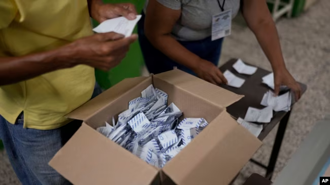 ARCHIVO – Funcionarios electorales cuentan votos luego del cierre de las urnas durante las elecciones presidenciales de Venezuela, en Caracas, el 28 de julio de 2024.