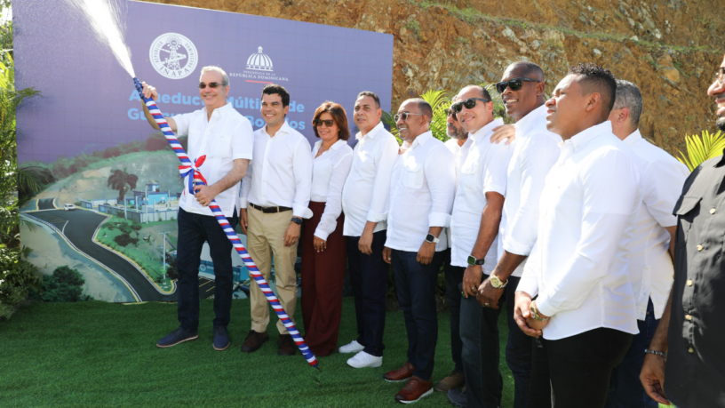 Monte Plata, RD.-El presidente Luis Abinader y Wellington Arnaud, director ejecutivo del Instituto Nacional de Aguas Potables y Alcantarillados (Inapa), inauguraron el Acueducto Múltiple Guanuma-Los Botados, provincia Monte Plata, que garantizará el servicio de agua, en cantidad, calidad y presión, a los residentes de la demarcación.