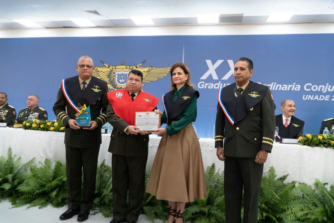 El acto fue presidido por la vicepresidenta de la República, Raquel Peña quien se hizo acompañar del ministro de Defensa, Teniente General Carlos A. Fernández Onofre, ERD, el Ministro de Educación Superior, Ciencia y Tecnología (MESCyT), Doctor Franklin García Fermín, el Ministro de Administración Pública (MAP) Dr. Sigmund Freud y el Rector de la UNADE, Mayor General Francisco Antonio Ovalle Pichardo, ERD.