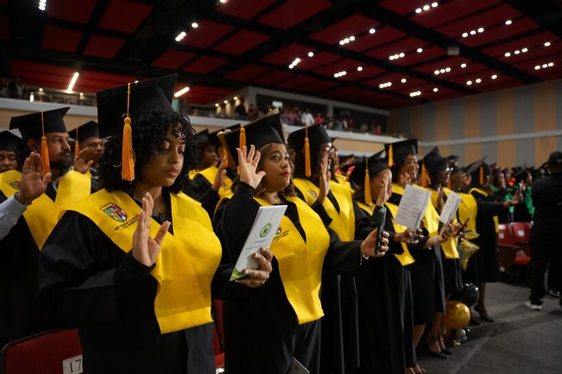 Santo Domingo.- La Universidad Católica Santo Domingo (UCSD) realizó la 96° graduación ordinaria, en que 351 jóvenes de diversas nacionalidades fueron investidos como licenciados. Esta nueva cohorte de egresados tuvo una representación femenina del 67%, siendo la licenciatura en Rehabilitación Física, de la Facultad de Ciencias de la Salud, la carrera más numerosa.