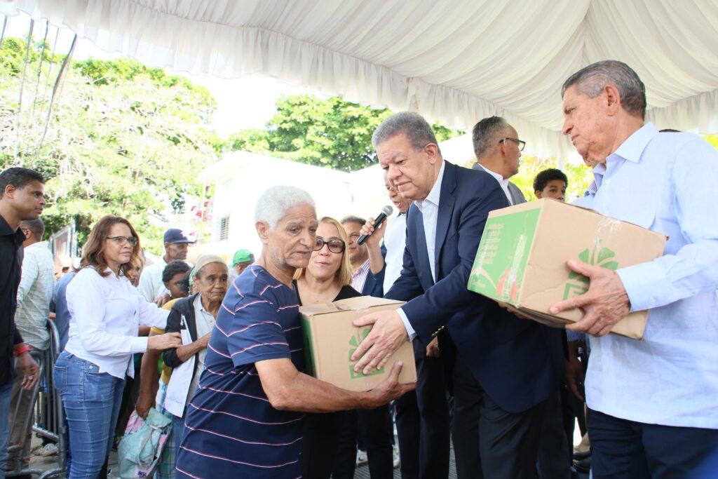 Santo Domingo.- El presidente de la Fuerza del Pueblo (FP), Leonel Fernández, hizo entrega de miles de cajas navideñas este domingo a personas de escasos recursos.
