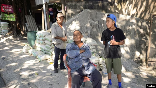 Varias personas esperan fuera de sus casas en San Salvador después de un terremoto que sacudió a El Salvador el 5 de enero de 2025.