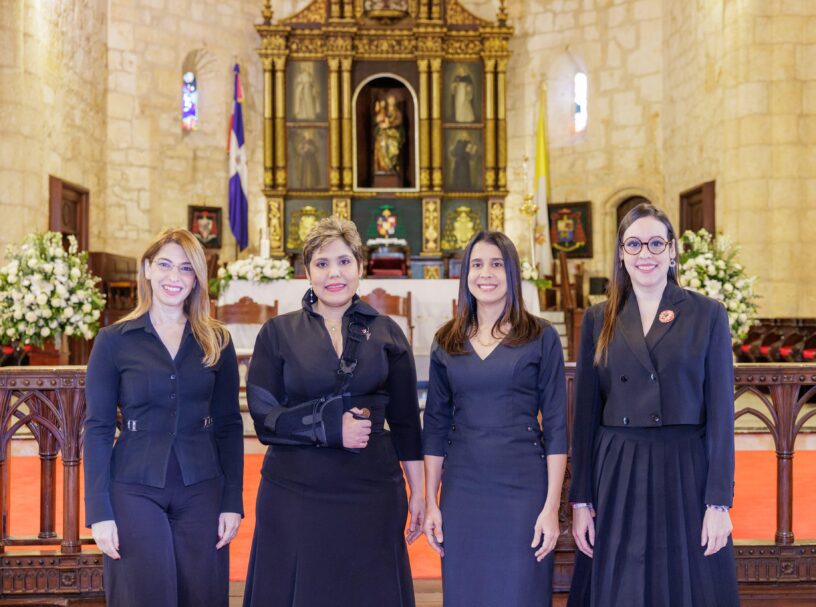 Pro-Competencia conmemoró su 17 aniversario con una Misa de Acción de Gracias en la Catedral Primada de América. En la imagen Keryma Marra María Eliana Vásquez Gianna Franjul y María Elisa Holguín López scaled.jpg